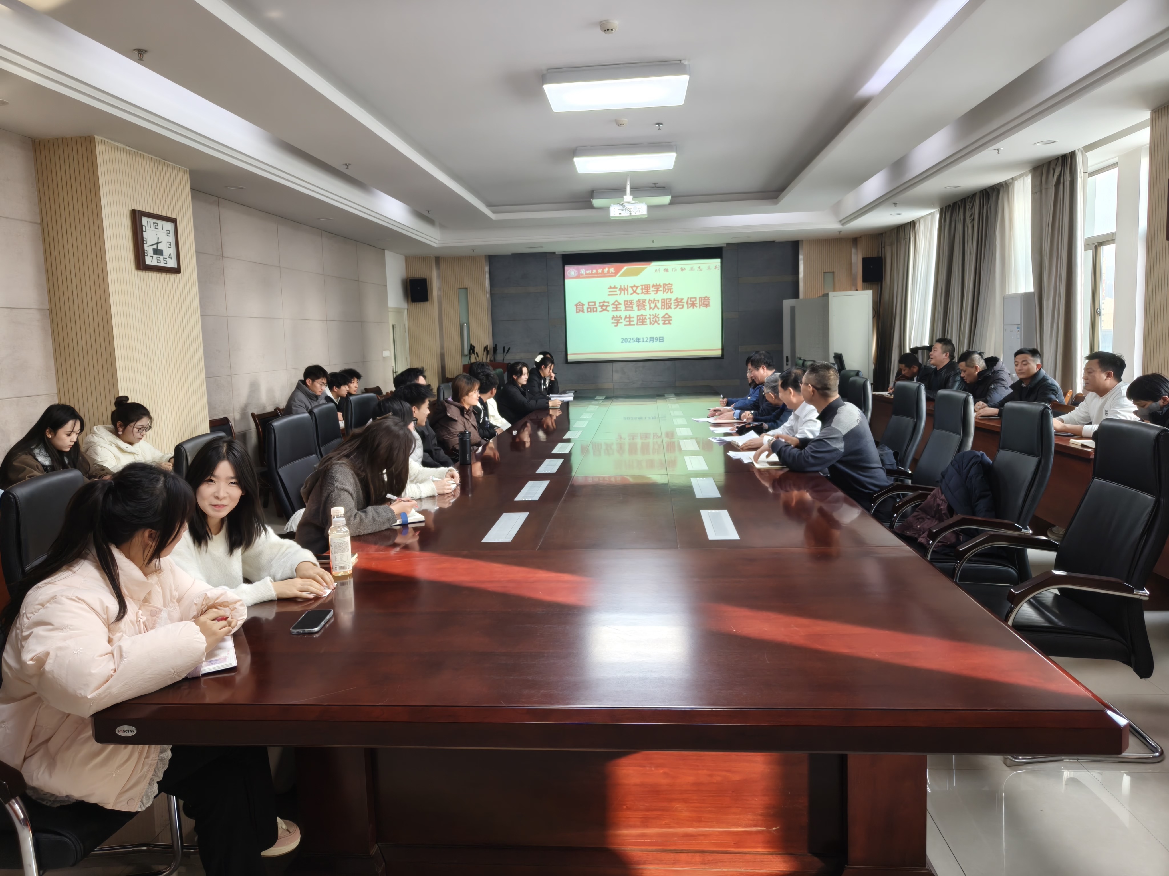 12月9日,我校召开餐饮服务保障工作学生座谈会,党委委员、副校长李敏骞主持会议。学生处、团委、后勤管理处、学生代表及各餐饮公司负责人参会,共同探讨提升餐饮服务与食品安全水平。